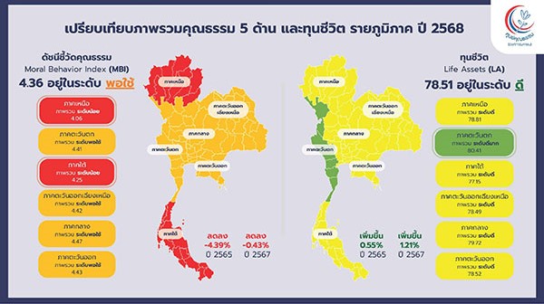 ขณะที่ผลสำรวจทุนชีวิต (Life Assets) อยู่ในระดับ ดี แสดงให้เห็นถึงพลังบวกและจิตสำนึกร่วมกันของคนไทยที่ยังคงเข้มแข็ง ดัชนีชี้วัดคุณธรรม (MBI) และทุนชีวิต (Life Assets) นับเป็นเครื่องมือชี้วัดระดับชาติที่มีความสำคัญ ผลลัพธ์ที่ได้ไม่เพียงสะท้อนสภาพคุณธรรมในสังคมไทย แต่ยังช่วยสร้างบรรทัดฐานด้านความสุจริต กระตุ้นการตระหนักรู้ และเสริมสร้างพฤติกรรมเชิงคุณธรรม หากนำฐานข้อมูลเชิงประจักษ์กำหนดเป็นทิศทางและแนวนโยบายด้านสังคมควบคู่ไปกับนโยบายด้านเศรษฐกิจ ย่อมเป็นพลังสำคัญในการขับเคลื่อนประเทศไทย สู่การพัฒนาทั้งเศรษฐกิจและสังคมที่มั่นคงและยั่งยืน