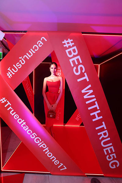 ภายในงานที่จัดขึ้น ณ ทรูแบรนดิ้งช็อป สยาม ซอย2 ลูกค้าทรู-ดีแทค เจ้าของเครื่องกลุ่มแรกจะได้สัมผัสปรากฎการณ์ Immersive Experience ครั้งแรกในไทยที่พาข้ามมิติก้าวสู่โลกอนาคต ตั้งแต่การข้ามเวลาผ่าน Laser wall สู่ประตูแห่งอนาคตเพื่อพบกับ iPhone 17 Pro และ iPhone Air ครบทั้ง 4 รุ่น พร้อมสัมผัส Experience Zone Snap moment, Stay TRUE โพสไหนก็ไม่ธรรมดา และ Stay True Stay style ที่ถูกออกแบบให้สะท้อนความเป็น Unexpected Trend ถ่ายทอดความบันเทิงกับคอนเทนท์ที่หลากหลายในสเกลยักษ์ มอบประสบการณ์เหนือความคาดหมาย ตื่นตาตื่นใจกับ Immersive Room: Into the Future ประตูมิติที่พาผู้เข้าร่วมสัมผัส ดีลโปรข้ามเวลา ผ่าน Immersive Experience เต็มรูปแบบ ปิดท้ายด้วย Photo Spot สุดล้ำ ที่มาพร้อมแคปชั่น Got the Future iPhone 17 ให้ผู้ร่วมงานแชร์ความประทับใจบนโซเชียลหรือเก็บเป็นที่ระลึกได้ทันที โดยในงานยังได้รับความสนใจจากบรรดา เซเลบริตี้ แฟชั่นไอคอน อินฟลูเอ็นเซอร์ ตัวจริงเสียงจริงแห่งกระแส แวะเวียนมารับเครื่อง และร่วมกิจกรรมไม่ขาดสาย อาทิ โอปอล สุชาตา Miss World 2025 คนแรกของไทย พี่เหว่ง เทพลีลา ยูทูปเบอร์และคอนเทนครีเอเตอร์ชื่อดัง จั๋ง วิกร, กฤติน กฤติน, ปาล์ม พีรวิชญ์ และน้องเล็ก ปลั๊กกี้ ธรากร วง PERSES (เพอร์เซส) บอยกรุ๊ปหน้าใหม่วงการ T-POP และอีกหนึ่งไฮไลท์เด็ด ที่พลาดไม่ได้ กับจิมมี่ จิตรพล และ ซี ทวีนันท์ ที่จะมาร่วมสร้างปรากฏการณ์การรับเครื่อง iPhone 17 จากทรู ดีแทค ในช่วงเย็น