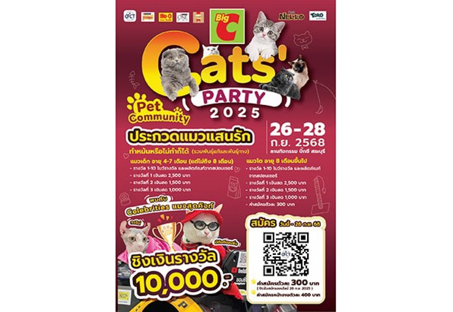 บิ๊กซี ร่วมกับ พันธมิตร จัดงาน CATS’ PARTY 2025 ประกวดแมวแสนรัก ชิงเงินรางวัลมูลค่า 10,000 บาท ระหว่างวันที่ 26-28 กันยายน 2568 ที่ บิ๊กซี สาขาสระบุ