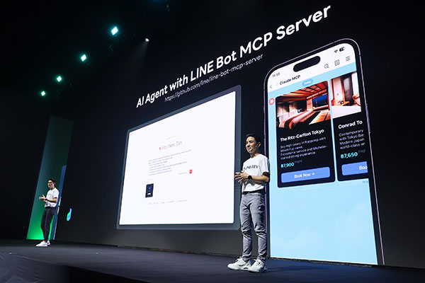 ภายในงาน LINE ได้เปิดตัว LINE Bot MCP Server ทำหน้าที่เป็นตัวกลางเชื่อมต่อ AI Agent เข้ากับ Messaging API ช่วยให้นักพัฒนาสามารถสร้างบริการที่ตอบโจทย์ผู้ใช้งานได้อย่างง่ายดาย โดยไม่จำเป็นต้องเขียนโค้ดเอง เพียงสั่งงานด้วย Prompt ก็สามารถสร้าง Flex Message หรือ Broadcast ข้อความให้ได้ทันที ทำให้การพัฒนาบริการรวดเร็วและยืดหยุ่นมากขึ้น