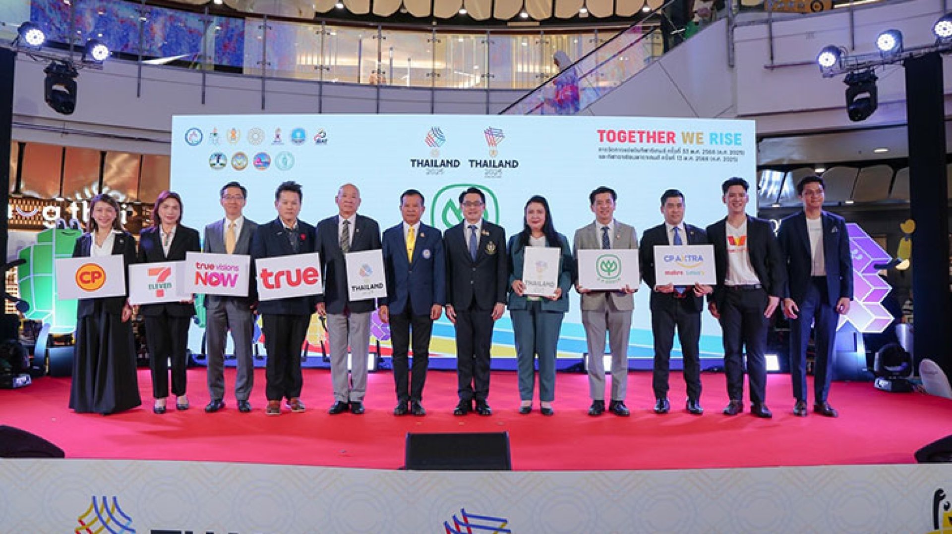 ในโอกาสที่ประเทศไทยก้าวขึ้นเป็นเจ้าภาพจัดมหกรรมกีฬาระดับภูมิภาคครั้งสำคัญ การกีฬาแห่งประเทศไทย (กกท.) จัดงาน Together We Rise เพื่อเปิดตัวผู้สนับสนุนอย่างเป็นทางการ โดยมี ดร.ก้องศักด ยอดมณี ผู้ว่าการการกีฬาแห่งประเทศไทย เป็นประธานในพิธี พร้อมด้วย คุณโอลิเวอร์ กิตติพงษ์ วีระเตชะ หัวหน้าคณะผู้บริหารด้านแบรนด์และมีเดีย บมจ. ทรู คอร์ปอเรชั่น ณ ศูนย์การค้าเซ็นทรัลเวิลด์ โดยการแข่งขัน ซีเกมส์ ครั้งที่ 33 จะจัดขึ้นระหว่างวันที่ 920 ธันวาคม 2568 ในกรุงเทพฯ ชลบุรี และสงขลา ภายใต้แนวคิด Green SEA Games และต่อด้วยการแข่งขัน อาเซียนพาราเกมส์ ครั้งที่ 13 ระหว่างวันที่ 2026 มกราคม 2569 ที่จังหวัดนครราชสีมา ภายใต้แนวคิด Sustainable Paralympics เพื่อสะท้อนความมุ่งมั่นของไทยในการจัดการแข่งขันอย่างยั่งยืน และเสริมสร้างมิตรภาพ ความสามัคคี รวมถึงการยกระดับมาตรฐานกีฬาสู่ระดับสากล