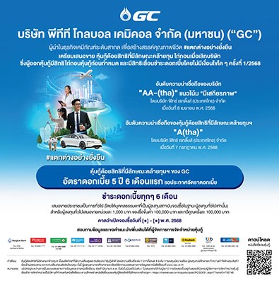 GC เตรียมออกหุ้นกู้ด้อยสิทธิที่มีลักษณะคล้ายทุนฯ สกุลเงินบาท ชุดใหม่ รับกระแสเชิงบวกจากนักลงทุน หนุนแผนบริหารเงินทุนระยะยาว รองรับการเติบโตธุรกิจมูลค่าสูง–คาร์บอนต่ำ
