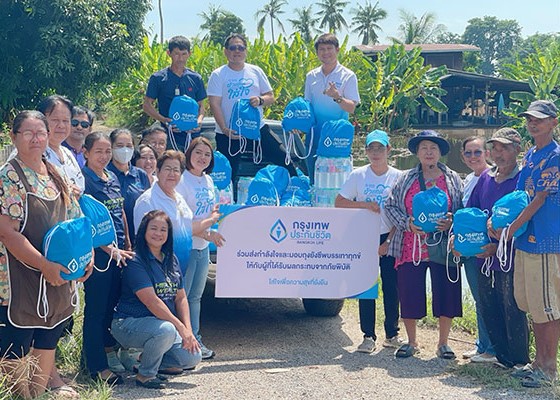 บริษัท กรุงเทพประกันชีวิต จำกัด (มหาชน) ตระหนักถึงความเดือดร้อนของพี่น้องประชาชนในหลายพื้นที่ที่ได้รับผลกระทบจากสถานการณ์อุทกภัยอันเกิดจากปริมาณฝนตกหนักต่อเนื่องในบริเวณภาคเหนือและภาคกลางตอนบน ส่งผลให้มีปริมาณน้ำไหลเข้าเขื่อนเจ้าพระยาเพิ่มสูงขึ้นอย่างมาก จนต้องเพิ่มการระบายน้ำเป็น 2,500 ลูกบาศก์เมตรต่อวินาที ทำให้ระดับน้ำในแม่น้ำเจ้าพระยาและแม่น้ำน้อยสูงขึ้นอย่างต่อเนื่อง และเกิดน้ำท่วมในหลายพื้นที่ โดยเฉพาะในจังหวัดพระนครศรีอยุธยา นครสวรรค์ และชัยนาท ซึ่งได้รับผลกระทบอย่างหนัก ทั้งด้านการดำรงชีวิต เศรษฐกิจ และความเสียหายต่อบ้านเรือน การเกษตร และเส้นทางคมนาคมริมแม่น้ำ