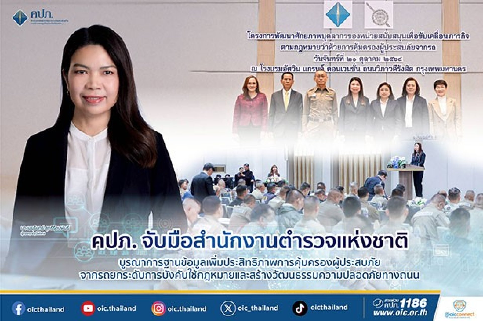 คปภ. จับมือสำนักงานตำรวจแห่งชาติ บูรณาการฐานข้อมูลเพิ่มประสิทธิภาพการคุ้มครองผู้ประสบภัยจากรถยกระดับการบังคับใช้กฎหมายและสร้างวัฒนธรรมความปลอดภัยทางถนน