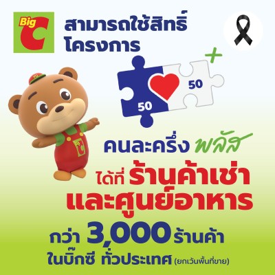 นอกจากนี้ บิ๊กซี ยังร่วมเป็นส่วนหนึ่งในการขับเคลื่อนเศรษฐกิจไทย ด้วยการเปิดพื้นที่ให้ลูกค้าสามารถใช้สิทธิ์โครงการ "คนละครึ่ง" พลัส ได้ที่ร้านค้าเช่าและศูนย์อาหารบิ๊กซีทั่วประเทศกว่า 3,000 ร้านค้า เพื่อให้อิ่มอร่อยและคุ้มค่ามากยิ่งขึ้น โดยสามารถสังเกตสัญลักษณ์หรือโลโก้ คนละครึ่ง พลัส ที่หน้าร้าน และชำระเงินได้ง่าย ๆ ผ่านแอปพลิเคชัน เป๋าตัง ซึ่งเป็นอีกหนึ่งทางเลือกที่ช่วยแบ่งเบาภาระค่าใช้จ่ายของประชาชน พร้อมทั้งสนับสนุนผู้ประกอบการรายย่อยให้เติบโตไปด้วยกัน โดยโครงการนี้เปิดให้ใช้สิทธิ์ได้ ตั้งแต่วันนี้ - 31 ธันวาคม 2568