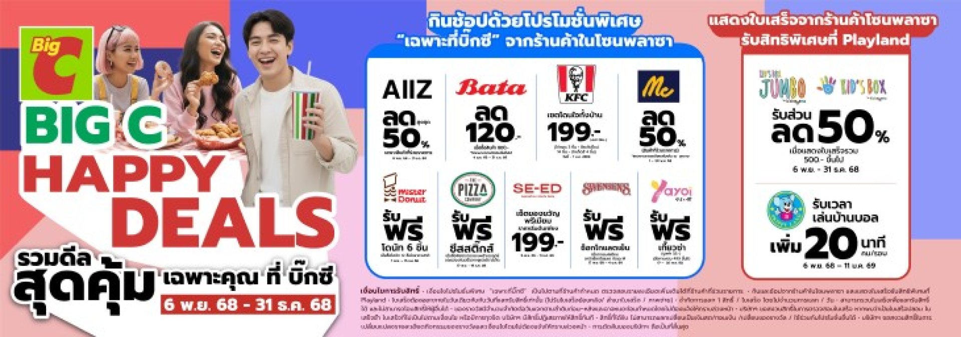 บิ๊กซี ชวนลูกค้าฉลองเทศกาลแห่งความสุขช่วงปลายปี ด้วยความสุขและความคุ้มค่า ผ่านแคมเปญ "Happy Deals รวมดีลความคุ้มส่งท้ายปีเพื่อคุณ เฉพาะที่บิ๊กซี" ที่ยกทัพโปรโมชั่นสุดพิเศษจากร้านค้าชั้นนำในโซนพลาซาและศูนย์อาหารทั่วประเทศ เพื่อให้ลูกค้าได้เพลิดเพลินกับประสบการณ์การ กิน เที่ยว ช้อป ครบจบในที่เดียว