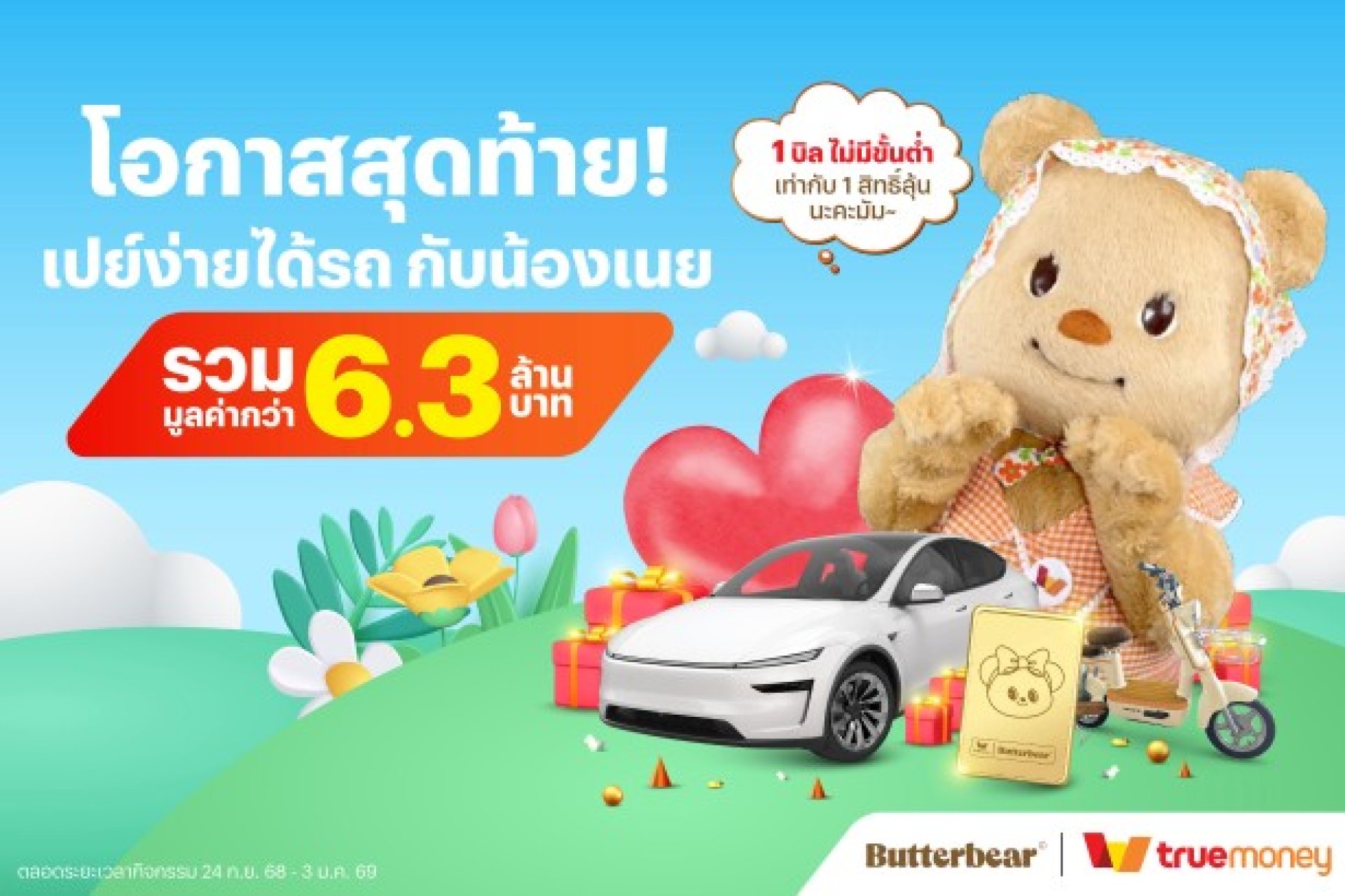 ทรูมันนี่ ผู้นำด้านบริการอิเล็กทรอนิกส์เพย์เมนต์และผู้ให้บริการทางการเงินดิจิทัลชั้นนำในภูมิภาคเอเชียตะวันออกเฉียงใต้ เดินหน้าสร้างประสบการณ์การชำระเงินที่ง่าย สะดวก และสนุกยิ่งขึ้น มอบโชคใหญ่ส่งท้ายปีให้กับลูกค้าทั่วประเทศ ผ่านแคมเปญ เปย์ง่ายได้รถ Butterbear ชวนผู้ใช้แอปทรูมันนี่ร่วมลุ้นรางวัลใหญ่ที่มาพร้อมความน่ารักสดใสของ น้องเนย ไอดอลสาวสุดฮอตขวัญใจมหาชน อาทิ รถยนต์ไฟฟ้า Tesla Model Y, น้องเนยทองคำ, รถจักรยานไฟฟ้าลายน้องเนย และของรางวัลอื่น รวมมูลค่ากว่า 6.3 ล้านบาท เพียงช้อปสินค้าราคาเท่าใดก็ได้ พร้อมชำระเงินผ่านแอปทรูมันนี่ ณ ร้านค้าที่ร่วมรายการ เริ่มนับถอยหลังสู่โอกาสในการเป็นผู้โชคดีก่อนสิ้นสุดแคมเปญ ตั้งแต่วันนี้ถึงวันที่ 3 มกราคม 2569